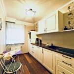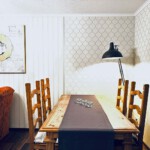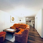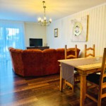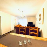 Die Ferienwohnung liegt im Erdgeschoss links und erstreckt sich über 100 qm. Sie bietet ein offenes Wohnzimmer mit Essbereich sowie eine separate Küche. Die Küche ist mit einem Kochfeld, einem Backofen und einer Filter-Kaffeemaschine ausgestattet. Die großzügige Raumaufteilung wird Sie begeistern.